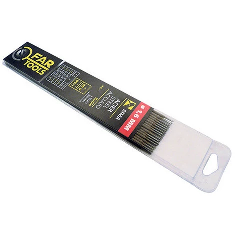 Eléctrode de soudure Type de baguette Rutile. Diamètre 1,6 mm. Longueur 300 mm. Nombre de baguettes x50. Emballage Coque plastique. Baguettes de 50 pièces pour soudure MMA (Manuel Métal Arc) Fartools, d’une longueur de 300 mm et d’une épaisseur de 1.6 mm. S’utilise avec un ampérage de 30 à 60 ampères. Vous trouverez cette boite de 50 pièces. Avec plus de 400 références différentes, Far Tools est toujours là pour vos projets et travaux. Qu’il s’agisse de travailler le bois, le métal ou n’importe quels matériaux de construction, de souder, couper, abraser, percer, rabot dégauchir, mortaiser ou poncer. la gamme jaune et noire de Far Tools est à vos côtés.