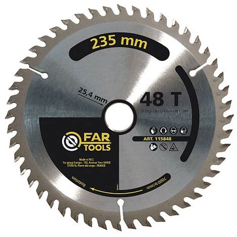 - Lame de scie circulaire : Lame de scie circulaire carbure D. 235 x 25,4 x 2,4 mm 48 dents
