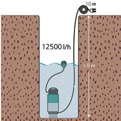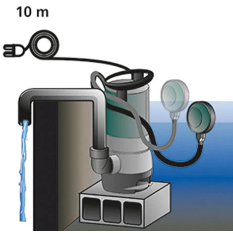 La longueur du cable de 10 m permet de vider d’important réservoir d’eau
