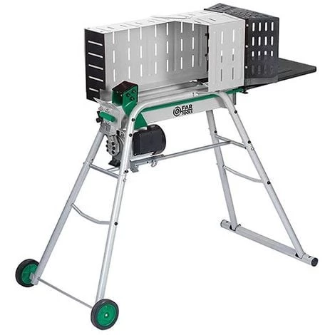 Fendeur de bûches 6 Tonnes. Puissance du moteur : 2100 W. Longueur de bûche : 250 – 520 mm. Diamètre de la bûche : 50 – 250 mm. Force de poussée : 6 T 24 Mpa. Vitesse de rotation : 2800 min-1. Type de construction : Mécano-soudé. Équipé de roulettes. Bonton arrêt d’urgence. Garantie : 2 ans ( hors pièce d’usures). Avec plus de 400 références différentes, Far Tools est toujours là pour vos projets et travaux. Qu’il s’agisse de travailler le bois, le métal ou n’importe quels matériaux de construction, de souder, couper, abraser, percer, rabot dégauchir, mortaiser ou poncer. la gamme jaune et noire de Far Tools est à vos côtés.
